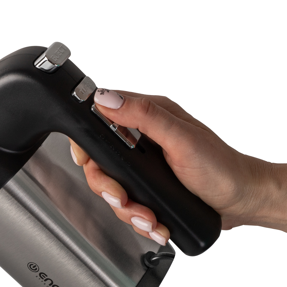 5 скоростей смешивания, Режим TURBO, Прочный корпус с удобной эргономичной ручкой, 2 комплекта насадок, Кнопка высвобождения насадок, Материал: нержавеющая сталь