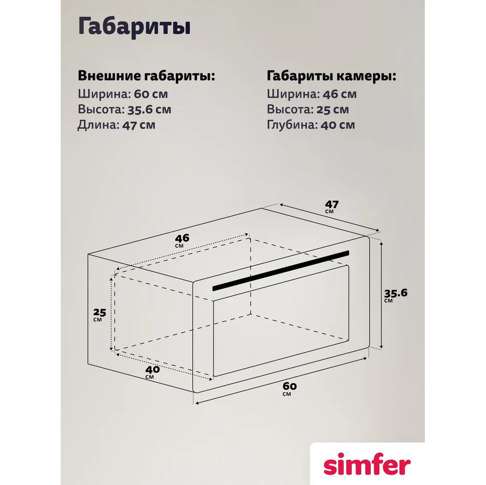 Режимы работы: Верхний + нижний нагрев, Верхний нагрев, Конвекция, Нижний нагрев