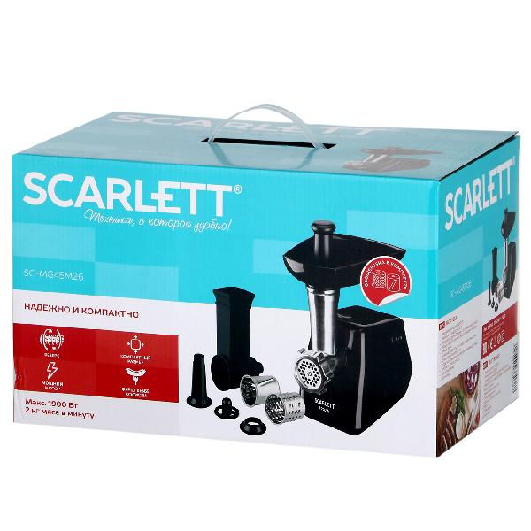 Мясорубка Scarlett SC-MG45M26 имеет прорезиненные ножки для предотвращения скольжения по столу. Корпус из пластика не нагревается во время длительной эксплуатации. Нож и шнек из металла не подвержены образованию коррозийного налета при постоянном контакте с водой. Съемные детали конструкции оптимально очищать от загрязнений с помощью проточной воды, губки или салфетки, неабразивного средства.