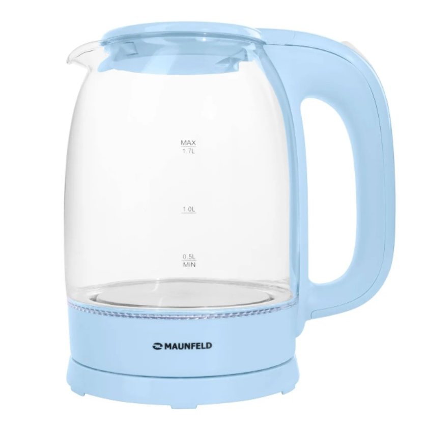 Индикатор уровня воды нанесен непосредственно на стеклянную колбу.Открывание крышки осуществляется кнопкой, расположенной в верхней части крышки. Кнопка включения/выключения расположена в верхней части теплоизолированной пластиковой ручки.