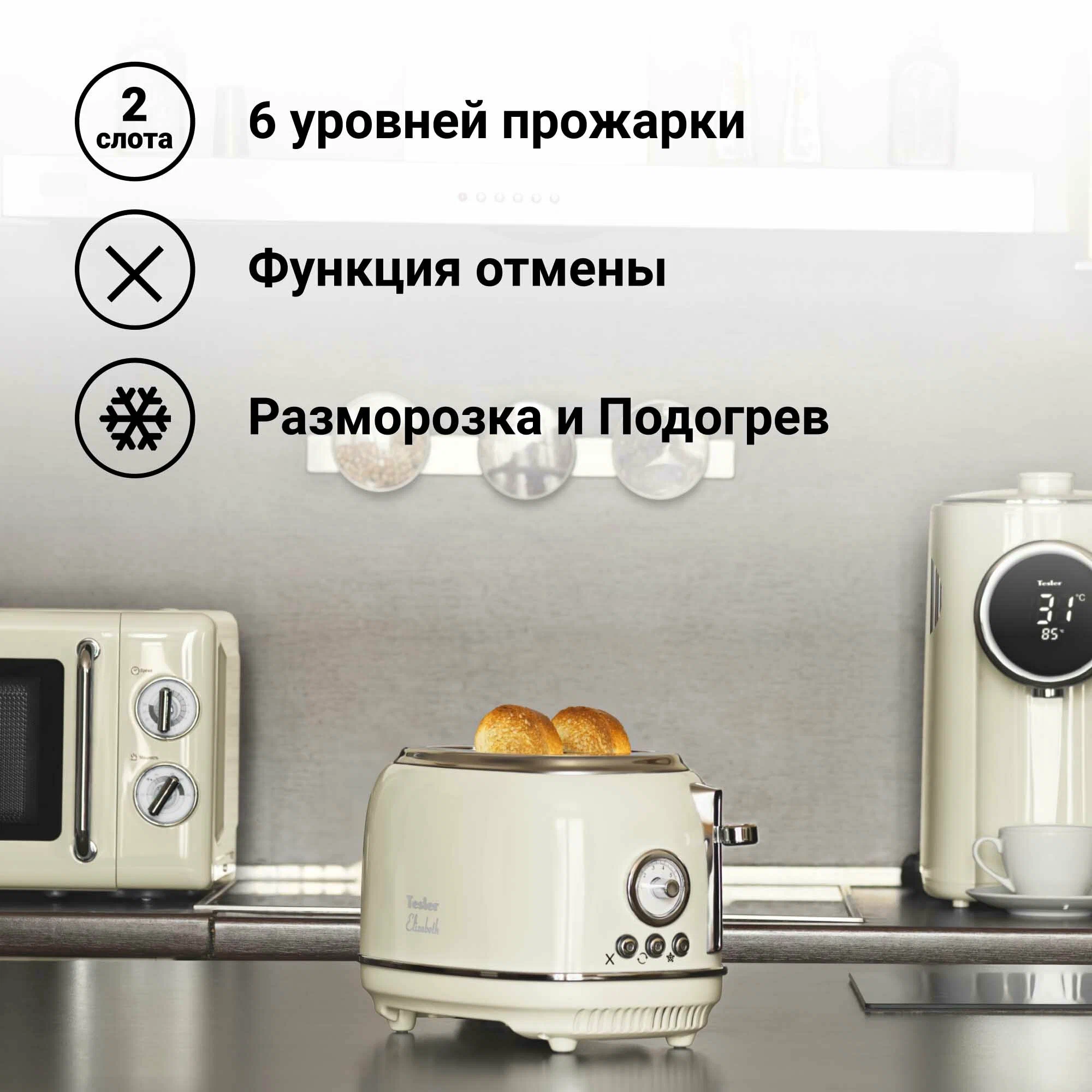 Основные характеристикиБрендTeslerЦвет товараbeigeМощность815 ВтКоличество отделений2Количество тостов2Тип управлениямеханическоеДополнительные характеристикиОсобенностиавтоматическое поднятие тостов, лоток для крошек, нескользящие ножки, разморозка, регулировка температуры, функция подогреваДополнительные функцииавтоматическое поднятие тостов, автоматическое центрирование тостов, кнопка отмены, плавная регулировка температуры, регулировка степени обжариванияДополнительные режимыфункция подогрева, функция размораживанияВ комплектеТостер - 1 шт Выдвижной поддон для крошек - 1 шт Руководство пользователяМатериал корпусапластикДлина сетевого шнура80 смВысота19.1 смШирина29.5 смГлубина18.8 смВес1.4 кгДополнительная информациягабариты (ШхГхВ): 29,5х18,8х19,1 см