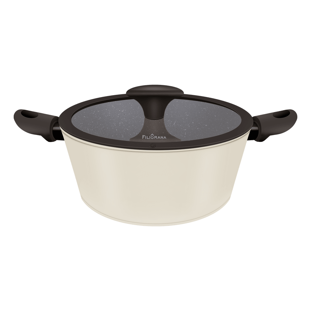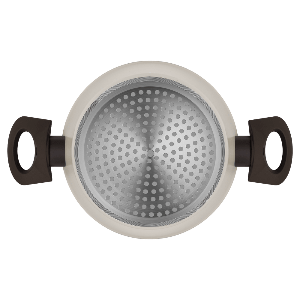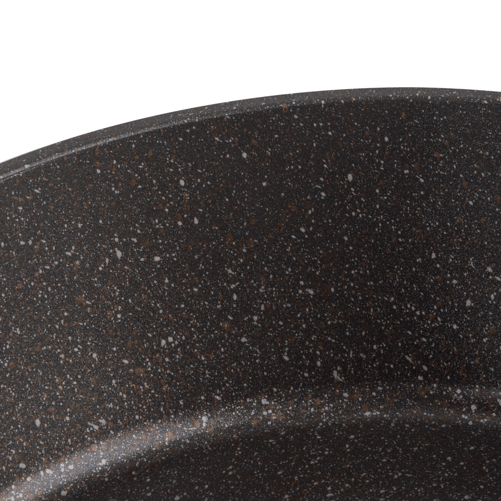 - Трехслойное антипригарное покрытие. Устойчивое к царапинам, полностью безопасное антипригарное покрытие, позволяет готовить блюда без использования большого количества масла. Не содержит свинец и кадмий, без PFOA.